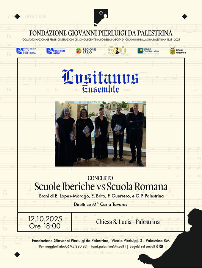 Il concerto si inserisce all’interno delle celebrazioni per il Cinquecentenario della nascita di Giovanni Pierluigi da Palestrina (1525-2025), promosse dalla Fondazione Giovanni Pierluigi da Palestrina.