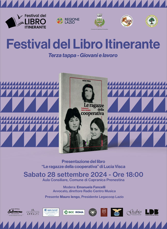 La tematica trattata sarà giovani e lavoro, attraverso il libro edito da Edizioni AllAround, con l’autrice Lucia Visca che ci racconterà il suo libro “Le ragazze della cooperativa”, una testimonianza del 1970 di un gruppo di giovanissime ragazze di Allumiere che costituiscono una cooperativa, in quegli anni dove l’italia si presta a vivere una delle stagioni peggiori della lotta al lavoro nel secolo scorso.