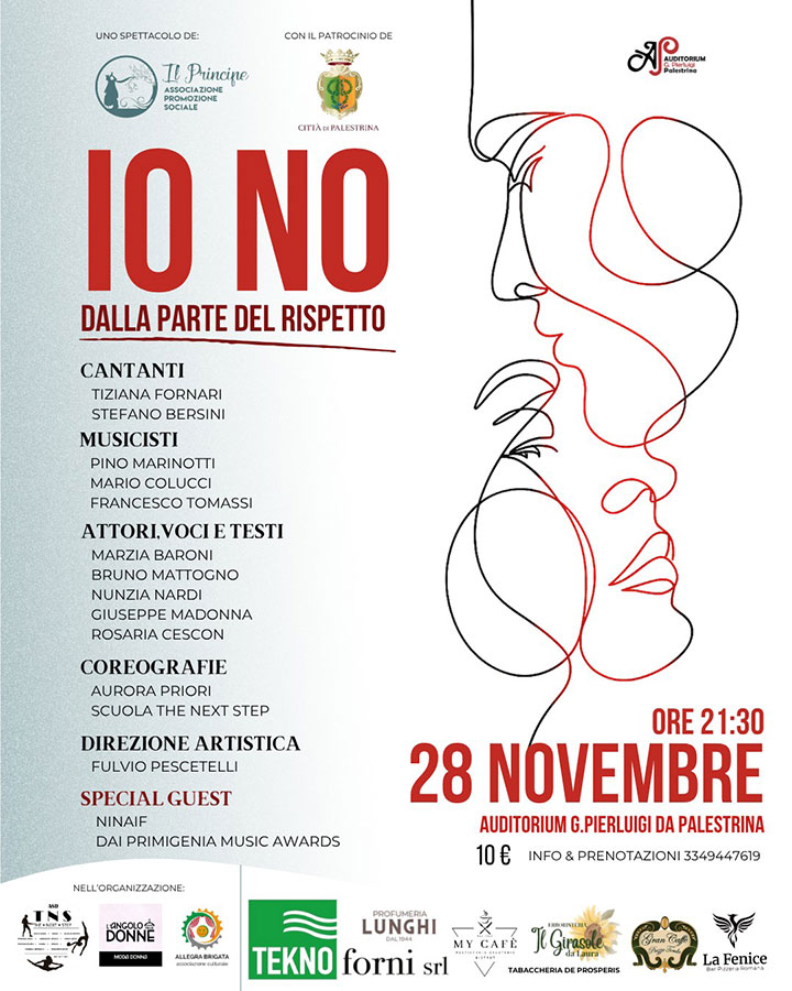 In occasione della Giornata internazionale per l’eliminazione della violenza contro le donne del 25 Novembre, l’APS Il Principe parteciperà insieme ad altre associazioni all’iniziativa proposta per il secondo anno dal Comune di Palestrina: una settimana di eventi che vede coinvolte più realtà associative le quali si uniranno con un evento presso l’Auditorium Giovanni Pierluigi il 28 Novembre alle ore 21:30.