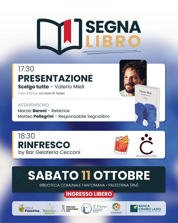 L’associazione Il Principe Aps, nell’ambito del Progetto Segnalibro, è lieta di annunciare un evento culturale d’eccezione: sabato 11 ottobre 2025, alle ore 17:30, si terrà la presentazione dell’ultimo libro di Valerio Mieli “Scelgo tutto” edito da La Nave di Teseo.